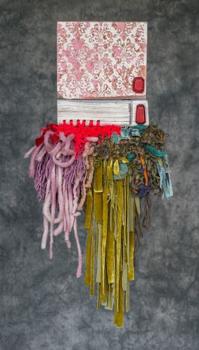 Lauren Thomson creates unique artwork out of encaustic, natural fibers, wood and various other mixed media, developing forms that do not follow any logical criteria, but are based only on subjective associations rooted in her lifelong obsession with color and patterns and tactile sensations. And shiny things. By focusing on several contrasting techniques and materials, she often creates distinctly non-identical familiar works.