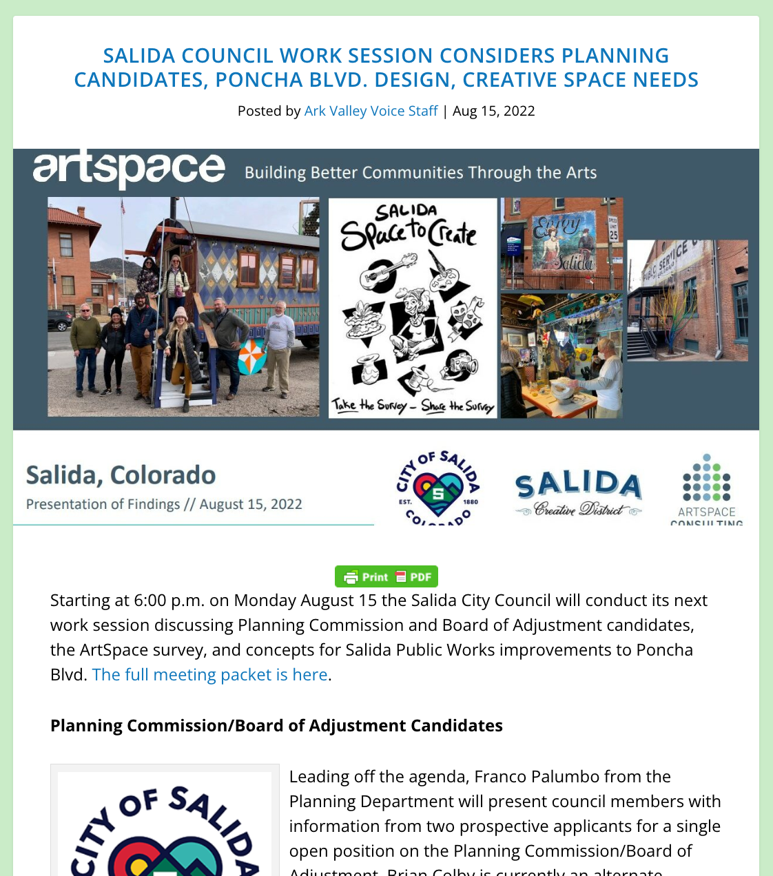 SALIDA COUNCIL WORK SESSION CONSIDERS…