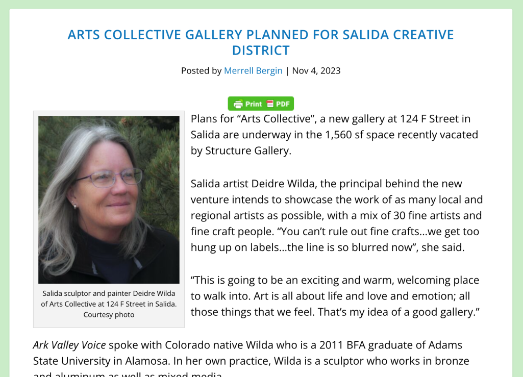 ARTS COLLECTIVE GALLERY PLANNED FOR SALIDA CREATIVE DISTRICT