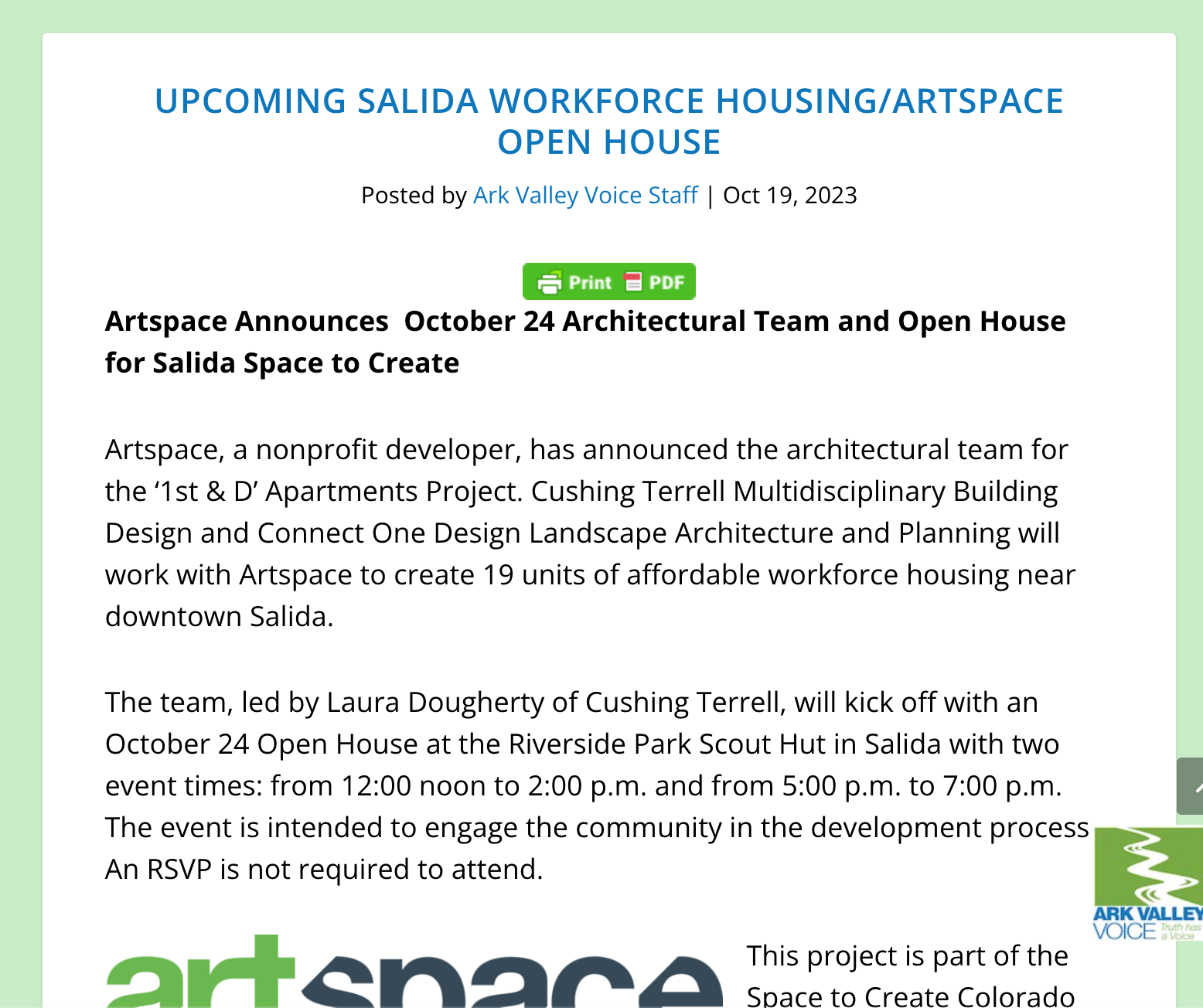 UPCOMING SALIDA WORKFORCE HOUSING/ART…