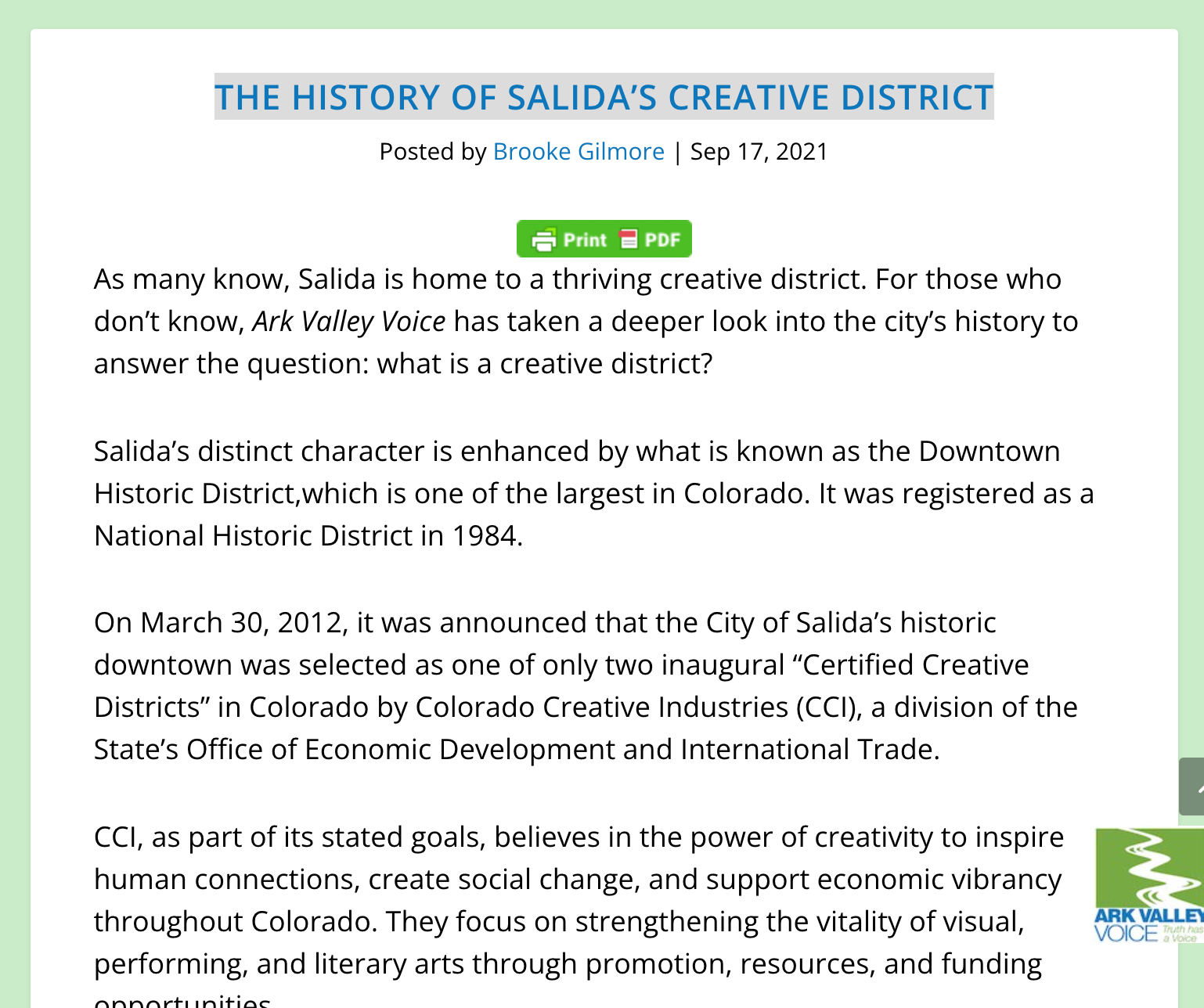 THE HISTORY OF SALIDA’S CREATIVE DIST…
